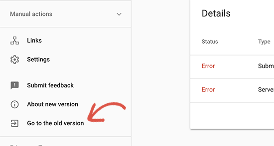 Đăng nhập vào tài khoản Google Search Console & chuyển sang giao diện webmaster cũ.