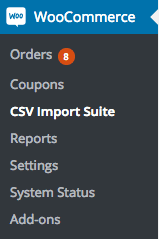 Nhập sản phẩm vào WooCommerce rất đơn giản. Trong trang quản trị WordPress, bạn nhấn vào WooCommerce > CSV Import Suite.
