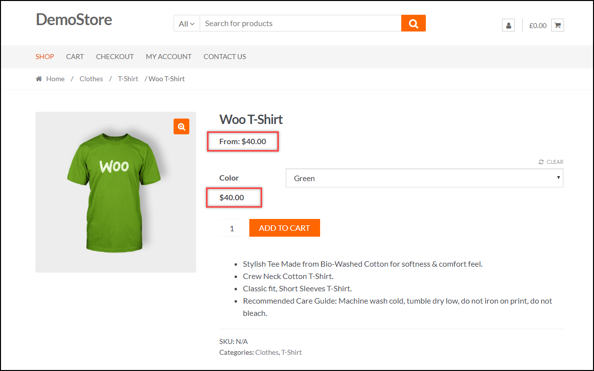 Bạn muốn chỉnh sửa tính năng của WooCommerce. Nếu bạn đang bán sản phẩm có tùy chọn thuộc tính , thì có thể thấy xuất hiện khoảng giá cho (các) sản phẩm nhất định. Trong khi một số người có vẻ thích tính năng này, nhưng có những chủ shop muốn ẩn khoảng giá và hiển thị giá sản phẩm khi biến thể tương ứng được chọn.