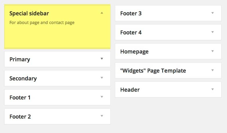 Sau khi bạn thêm các vùng widget mới và nó được xuất hiện trên trang quản lý widgets như thế này: