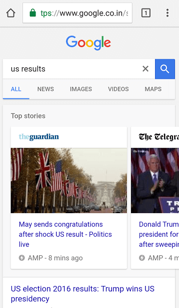 Chẳng hạn, bạn sẽ nhìn thấy dạng slide ở phía đầu trong kết quả tìm kiếm Google, cho biết website hiển thị ở chế độ AMP.