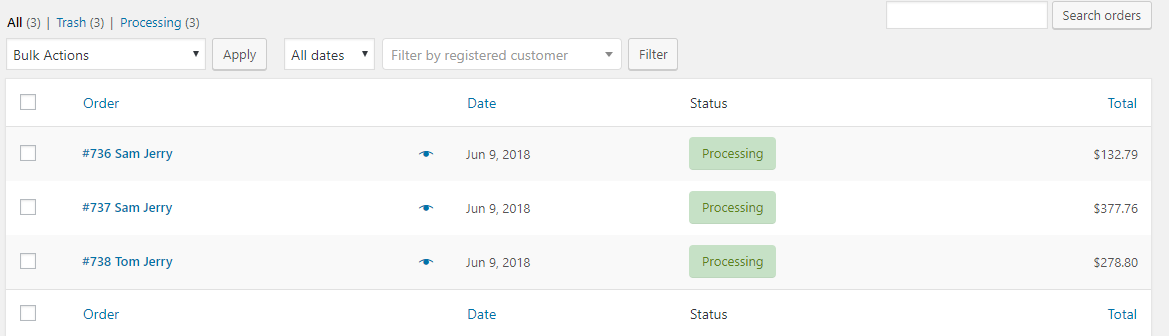 Sau đó điều hướng đến WooCommerce → Orders từ cửa hàng A của bạn: