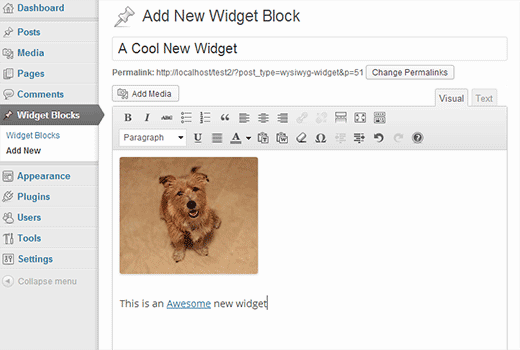 Do vậy phải tìm một giải pháp cho phép người dùng tạo widget nội dung sử dụng trình soạn thảo WYSIWYG (visual editor).
