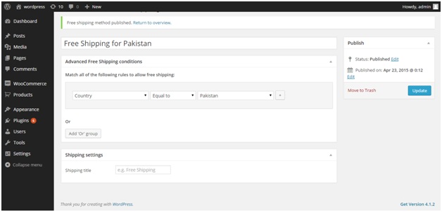 Ví dụ, chúng ta chỉ muốn áp dụng vận chuyển miễn phí cho quốc gia nào đó, tất nhiên bạn có thể thiết lập thêm các điều kiện khác.