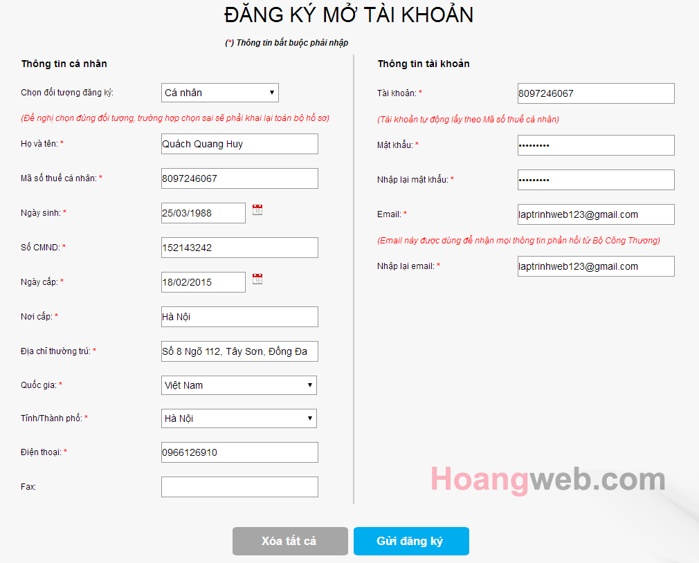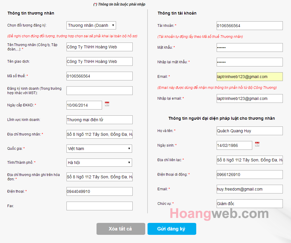 – Website bán hàng của khách hàng Hoangwebhiện theo những bước sau để đăng ký