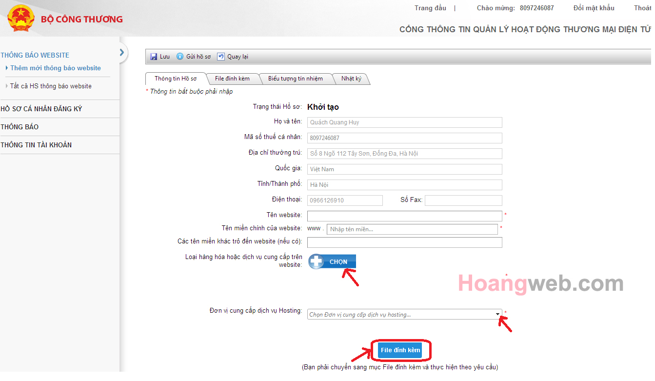 • Đối với chủ website là cá nhân cần chuẩn bị bản scan chứng minh thư nhân dân hoặc chụp ảnh CMTND để upload file