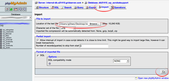 Như vậy bạn đã sửa xong file sql mới, sau đây bạn tiến hành nhập dữ liệu từ file sql này vào CSDL của WordPress. Truy cập vào phpMyadmin của website bạn muốn gộp dữ liệu, rồi nhấn tab Import, chọn tệp sql của bạn và nhấn nút Go. Kết quả dữ liệu bài viết Post của 2 blog đã được gộp thành công.