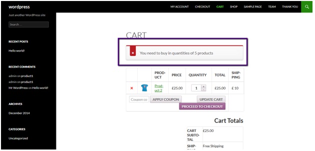 Trong bài học trước mình có hướng dẫn các bạn cách cấu hình giá trị đơn hàng tối thiểu trong WooCommerce. Khi người dùng thêm sản phẩm vào giỏ hàng, và cửa hàng của bạn yêu cầu giá trị đơn hàng tối thiểu trước khi có thể đặt mua. Trong bài hôm nay chúng ta sẽ giới hạn số lượng sản phẩm.