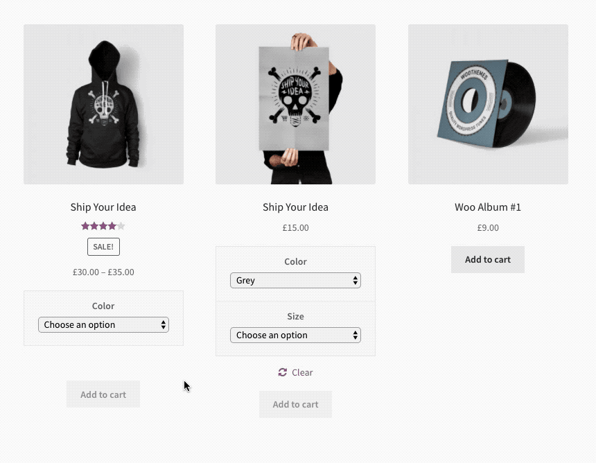 Đã có một số nghiên cứu chỉ ra rằng ít nhấp chuột hơn trên cửa hàng của bạn có nghĩa là chuyển đổi cao hơn. Như vậy, bạn nên xem xét hiển thị các biến thể sản phẩm WooCommerce của bạn trên trang cửa hàng; điều này bao gồm các trang danh mục, trang lọc kết quả tìm kiếm. Điều này có nghĩa là khách hàng của bạn sẽ không phải điều hướng đến trang sản phẩm để chọn tùy chọn sản phẩm của họ hoặc để xem sản phẩm họ yêu cầu thậm chí có sẵn hay không.