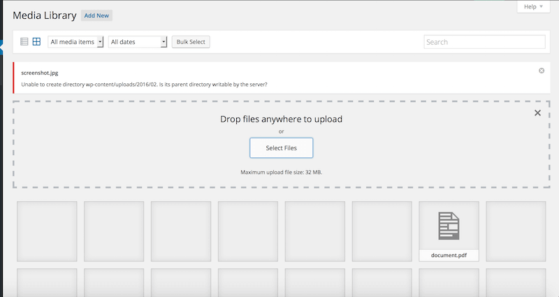Không thể tạo thư mục và lỗi ảnh trong WordPress Media
