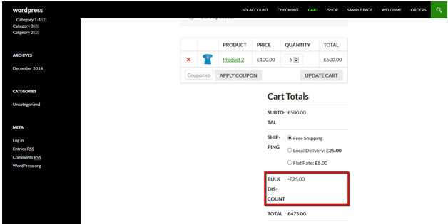 Trong hướng dẫn này, chúng ta sẽ tìm hiểu cách áp dụng giảm giá hàng loạt trong Woocommerce. Có nhiều cách để giảm giá cho khách hàng. Trong bài này, chúng tôi sẽ làm điều này với cách đơn giản nhất có thể. Một trong số cách đơn giản là áp dụng chiết khấu hàng loạt tùy thuộc vào tổng số giỏ hàng. VD giảm giá 5% cho các đơn hàng từ 500k trở lên và 10% cho các đơn hàng từ 1000k trở lên.